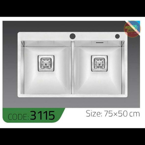 سینک باکسی 3115 الکا استیل | سینک ظرفشویی دو لگنه استیل سایز 75×50 سانت
